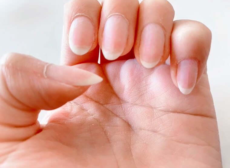 最後に、爪の表面をファイルで削って滑らかに整えます。乾燥しやすくなるため、ネイルオイルやハンドクリームで保湿ケアをしてください。